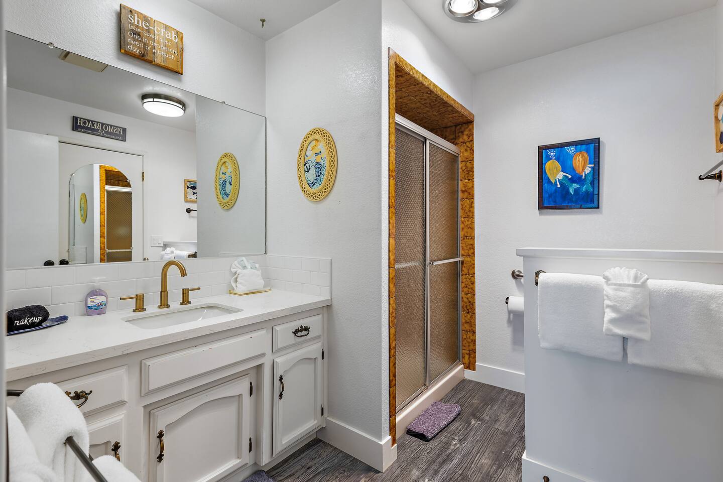 This spacious property sits up high on the corner of Strand and McCarthy with TWO sandy beach access points just steps from the home. You can also bring your toys, there is plenty of extra parking on this oversized lot. Sunset bonfires are permitted on the beach (time for S'mores!) and you only have to walk out the door onto the sand to find your special spot. You will have the entire beach as your own backyard playground. There is plenty of room for your families to sprawl out in this 1901 sqft home with 4 bedrooms, 2 baths, perfect for entertaining inside and out. You will enjoy easy proximity to all things Central Coast ~ walk along the shoreline to Pismo Beach, take a hike in the Oceano dunes or nearby hiking trails, horseback riding, rent or bring your own recreational vehicles, world-renowned dining, quaint shops, museums, short drive to Avila Beach, Arroyo Grande Village, SLO Farmer's Market, Hearst Castle, car shows, multiple festivals, wine tasting, Cal Poly, Morro Bay, Lopez Lake and so much more! We welcome you to enjoy this dreamy beach house and embark on the BEST vacation ever! First floor *2 bedrooms ~ each with one Queen bed (plus a futon sleeper in one of the bedrooms) and sliding glass doors to patio *Bathroom w/ shower & tub *Laundry in the garage Second Floor *Huge wrap-around deck with panoramic ocean views *Ocean view kitchen with all you will need to make fabulous meals for your ocean view dining ~ no reservations needed! *Cozy living room with a gas stove *Cable television, games, books, and more to keep the little ones occupied when you aren't at the beach! *Dining table off of kitchen *Eat-in bar top with 2 barstools *Primary bedroom with a Cal King bed, adjoins a large bonus bedroom with 2 Queen beds *Bathroom w/ shower Other Amenities *Outdoor space with fire pit and plenty of seating, including a vintage surfboard bench...photo opp! *Fully fenced doggie yard! *1 car space in attached garage plus 4-5 additional onsite parking spaces for your cars & toys! *Comfortably sleeps 11 *Recently renovated and thoughtfully decorated with a Cali beach vibe throughout *Keurig *Washer and dryer *Hair dryers *Plush towels and bath amenities *Comfortable beds and bedding *Wifi and Smart TVs *Charcoal BBQ